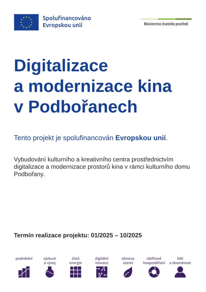 Vybudování kulturního a kreativního centra prostřednictvím digitalizace a modernizace prostorů kina v rámci kulturního domu Podbořany.