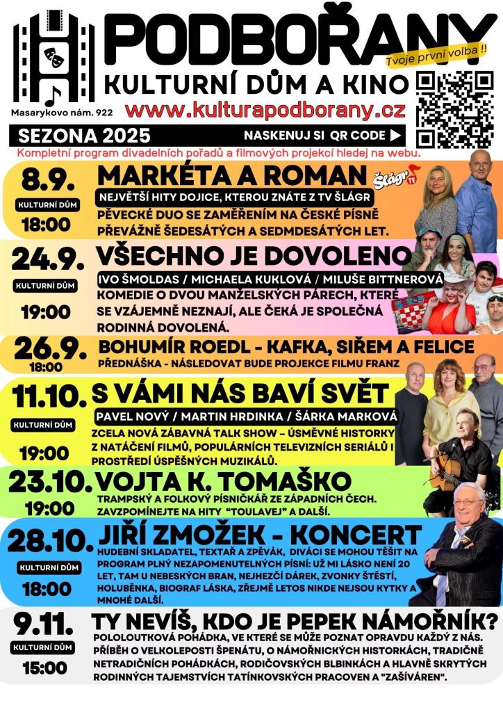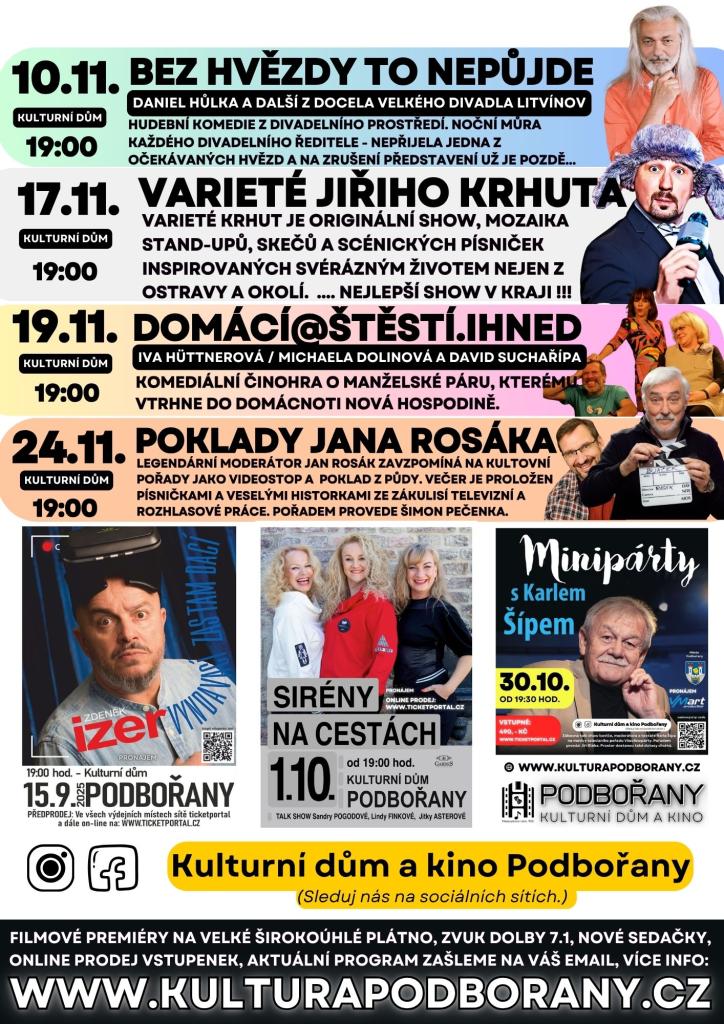 V jednání jsou další pořady. Program a online prodej vstupenek na www.kulturapodborany.cz