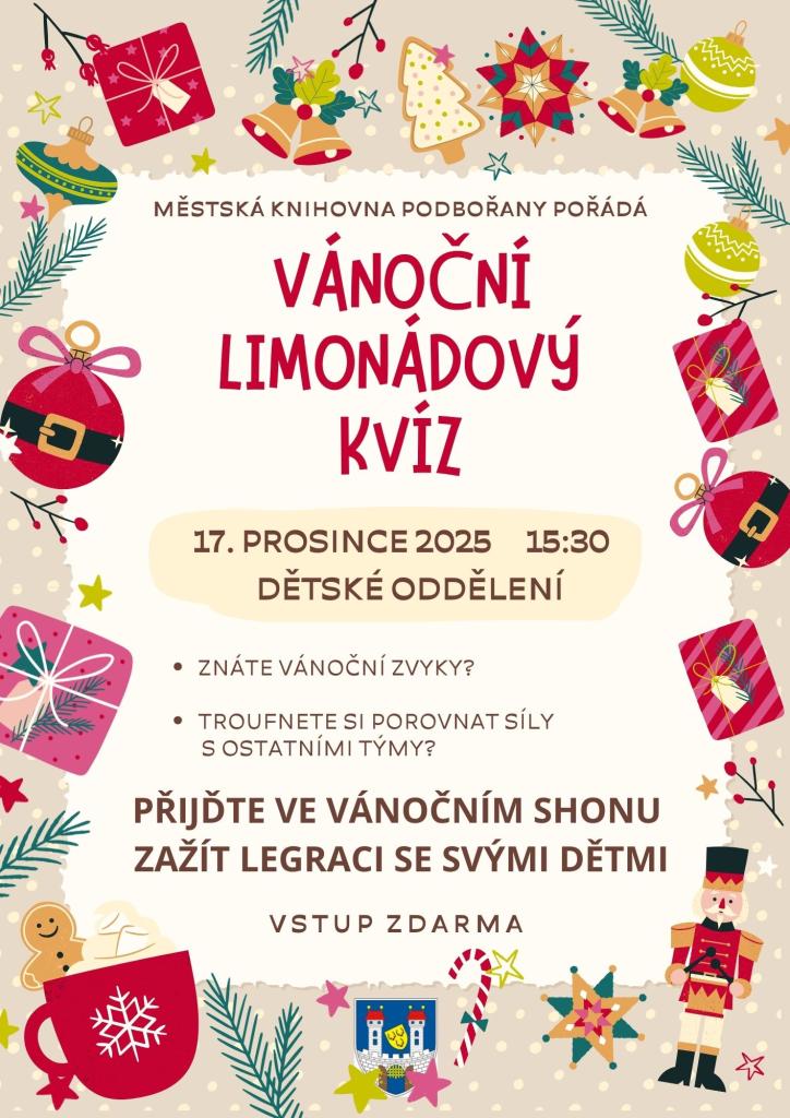 Městská knihovna Podbořany Vás zve na tradiční limonádový kvíz dne 17. prosince od 15:30 v 1. patře. Přijďte si ve vánočním shonu užít legraci. Vstup volný
