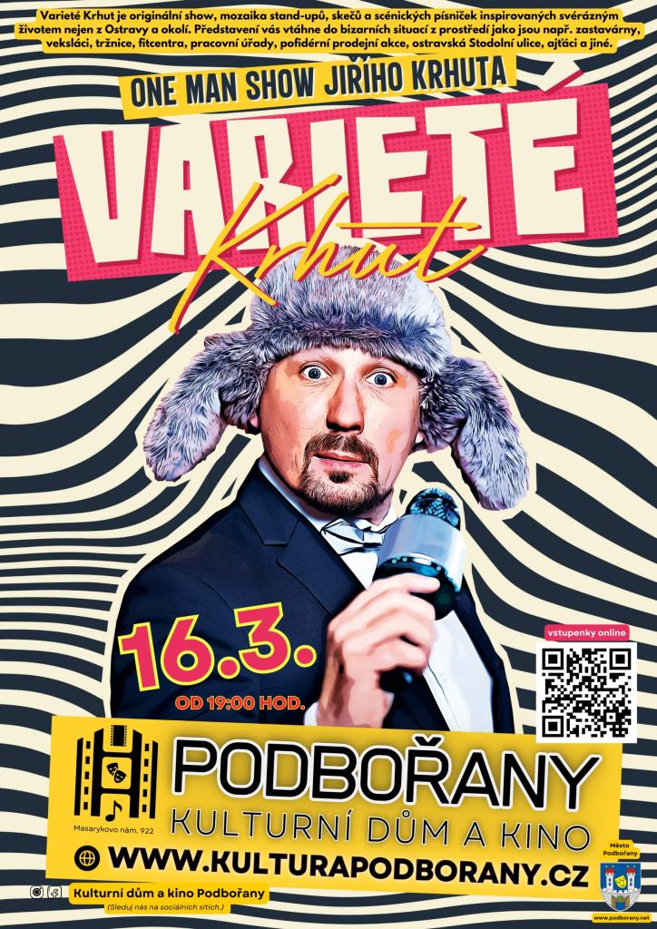 Varieté Krhut je originální show, mozaika stand-upů, skečů a scénických písniček inspirovaných svérázným životem nejen z Ostravy a okolí. Představení vás vtáhne do bizarních situací z prostředí jako jsou např. zastavárny, veksláci, tržnice, fitcentra, pracovní úřady, pofidérní prodejní akce, ostravská Stodolní ulice, ajťáci a jiné.
