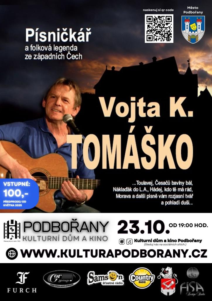Zavítejte do Kulturního domu v Podbořanech na koncert, který pohladí po duši! Ve čtvrtek 23. října od 19:00 zde vystoupí legendární písničkář a folkový zpěvák Vojta K. Tomaško. Těšit se můžete na večer plný trampské a folkové hudby, která je plná příběhů o lidech, lásce a přátelství.