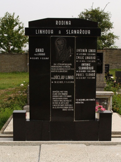 Popis: jedná se o rodinný hrob rodiny Linhovy a Slanařovy, mimo ostatních zde pohřbených jde o hrob PPR. VÁCLAVA LINHY, nápis „ZDE LEŽÍ MLADÝ BOJOVNÍK, HRDINA OD DUKLY A STREČNA, TEN ZA SVŮJ NÁROD – ZA VLAST PAD, BUDIŽ MU SLÁVA VĚČNÁ, 30. 12. 1925 – 14. 6. 1946.“
